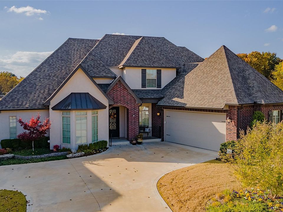Move-In Ready, newly constructed Two-Story home w/park like setting in Gated South Tulsa neighborhood. Home has an open concept feel w/defined spaces. Tall ceilings & large windows featuring covered backyard patio with no backyard neighbors! 4 bedrooms + study, 3.5 baths, 3 car garage. Attached workshop w/ HVAC and Epoxy Flooring. Open kitchen with granite, SS appliances, gas range, coffee/wine bar and enjoyable views. Other upgrades: Spray foam insulation, Storm Shelter. Please check out virtual tours!