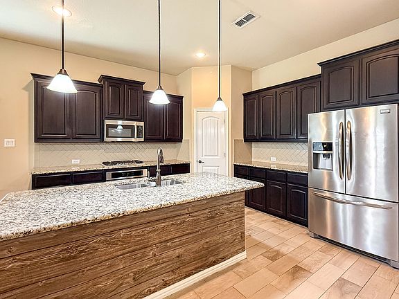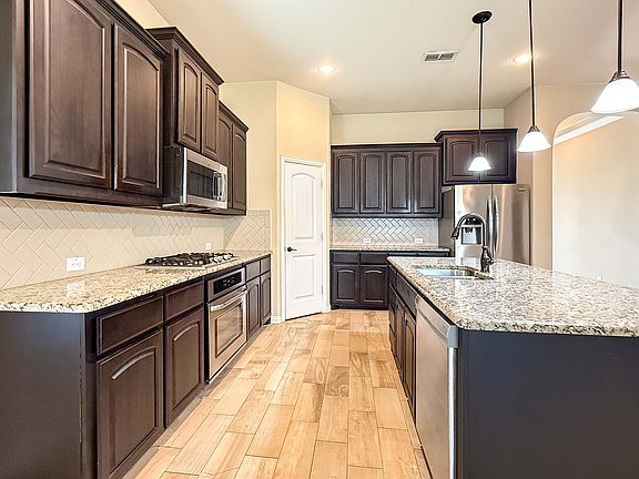 Stunning Corner-Lot Home with Versatile Living Spaces and Modern Finishes! Welcome to this beautifully designed home situated on a spacious corner lot, offering comfort, style, and functionality for today's modern lifestyle. Step inside to find wood-look tile flooring that flows seamlessly from the entry through the main living areas, setting the tone for an elegant and low-maintenance interior. The open-concept family room is generously sized and connects effortlessly to the gourmet kitchen, featuring: Granite countertops and a massive center island perfect for entertaining, Gas cooktop, stainless steel appliances, and a walk-in pantry. Behind French doors, discover a flexible office space that could easily serve as a fifth bedroom. The split-bedroom layout ensures privacy, with the spacious owner's suite and en-suite bath tucked away on the main floor for convenience. Enjoy your mornings or unwind in the evenings in the cozy enclosed porch just off the kitchen ideal for relaxing with a book or sipping coffee. Upstairs, the thoughtfully designed second level offers: four additional bedrooms, two full bath, a large game room perfect for movie nights or playtime. Buyers and agents to verify all information including schools and taxes.