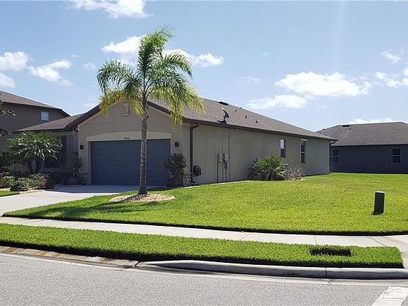 3 Bedroom, 2 Bath with den-2178sq.ft. under air, oversized corner lot located in beautiful Harrison Ranch. This Oasis model has just about every upgrade offered. Low HOA and no CDD debt. Harrison Ranch is zoned for the brand new Harvey Elementary and Parrish Comm. High. 8' doors throughout, 8' glass/ornate metal entrance door, 18" tile on diagonal in bathrooms and laundry. Foyer, kitchen, and great room have hand carved wood laminate flooring. Custom designed hidden cabinet/storage area with hard wired lighting and power outlets. Built in stainless GE range/oven/microwave/dishwasher with granite kitchen countertops. All base cabinets have upgraded pull out slides and separate trash/recycle bin. Master bedroom has tray ceiling along with large walk in closet with upper and lower shelving to maximize storage. Master bath has fully tiled oversized walk in shower. It also boasts granite countertops and dual sinks and comfort height upgraded cabinets. Secondary bath has tiled tub with comfort height upgraded cabinets. Countertops are white quartz with glass vessel sink and stainless faucet. Extended, screened lanai is finished with paver bricks. Exterior has upgraded stacked stone elevation. Mature landscaping with professional curbed edging. Rain bird irrigation system, hurricane shutters and full gutter package. Garage has a 4" extension making it 20'w x 24'd, Stonhard epoxy floor coating and area above the garage has been rough finished with plywood/lighting and is easily accessible for ample storage
