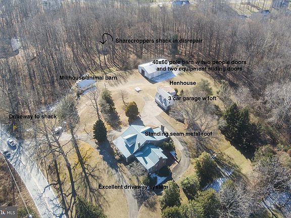 OPEN HOUSE FEB 7, FROM 11-1. Set on 6 picturesque acres, this exceptional all-brick estate offers 4 bedrooms, 3.5 baths, and nearly 5,000 square feet of timeless craftsmanship, thoughtful design, and outstanding outbuildings. The home features four fireplaces, and all-natural wood floors. A bedroom and full bath are conveniently located on the main level. Nine-foot ceilings define the main floor, which includes open stairs with gorgeous chestnut wood railings, a formal living room with brick fireplace and wood mantel, formal dining room, office, den with a brick fireplace, family room with a brick fireplace and walk-in coat closet, kitchen, and half bath. Six doors on the main and lower levels provide direct access to porches, patios, the driveway, and the yard, while large windows on every level fill the home with natural light. The crown jewel of the home is the richly appointed den, showcasing exquisite woodwork, custom built-in bookshelves, a 9-foot beamed ceiling with recessed lighting, and a brick fireplace. Two separate doors lead to the enclosed front porch and the expansive backyard, offering seamless transitions between interior spaces and outdoor living areas. The upper level offers three additional bedrooms and a full bath, featuring wide hallways and abundant windows that create a bright, spacious feel throughout. Bedrooms are generously sized with ample closet space, and a walk-in cedar hall closet provides additional storage. Both the upper- and lower-level full bathrooms reflect classic early-1900s design including mosaic floors and have been preserved in impeccable condition. The basement is accessed by two separate staircases—one leading to a workshop area and the other to a finished family and recreation room complete with a small full bath, bar, brick fireplace, and a separate split HVAC system. Each basement area has its own exterior access. Outside, the property is equally impressive with four quality outbuildings, including a 38’ × 60’ pole barn featuring a 14’ sliding door on the end and a 17’ sliding door on the side, a detached three-car garage with storage above, an 18’ × 30’ chicken coop, and a mill house suitable for use as a horse barn with hay storage. Not counted as one of the outbuildings is a former tenant farmer shack that was occupied as a dwelling with running water and electric many years ago. Two water spigots and two frost-free hydrants support gardening, livestock, or equestrian use. The land is well suited for large-scale gardening, a horse farm, or livestock. An efficient circular driveway provides access to the front of the home and continues to the rear, offering ample parking and ease of use. A steal roof with an expected life of 70 years, or longer with proper care, was installed in early 2000's, A new geothermal heating and air-conditioning system, exceptional brickwork, fine wood detailing, and outstanding overall condition further underscore the value of this stately residence. A truly special offering for the discerning buyer seeking space, privacy, craftsmanship, and enduring quality. The property is ideally situated near the interconnected conservation lands of Patuxent River Park and Merkle Wildlife Sanctuary—providing unparalleled access to 9400 acres of protected parkland, waterways, and miles of scenic trails for hiking, horseback riding, kayaking, and Ranger-led activities for children. Convenient commuting access—approximately 40 minutes to Washington, DC; 35 minutes to the Pentagon; 22 minutes to Joint Base Andrews; and 44 minutes to Fort Meade. 240-714