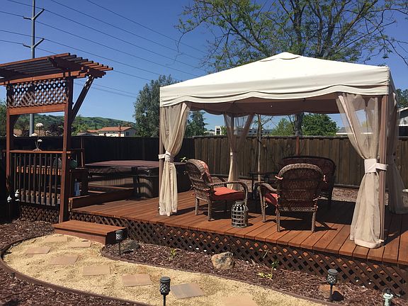 Rare find beautiful updated home with a huge flat lot at such price in the area! Great location within short distance to top rated Elem. School, Junior High, and High School. Bright and airy. Living/dining room with fireplace. Updated kitchen with granite countertops, breakfast nook, eat in area, recess lighting. Beautiful tile floor in family room, kitchen, hall way & baths. Shower walls with tile to the ceiling in baths. Gorgeous backyard with large patio, deck, low maintenance landscape. Specious side yard. Finished garage with closet. Front yard with stamped concrete floor and water fountain. Privately back to the Iron Horse Trail. No rear neighbor. Easy access to Golf Club, park, shopping, and freeway. Don't miss it!