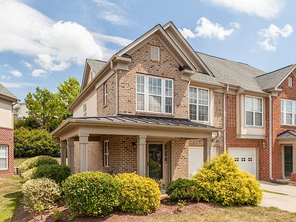 This END unit townhome in Brier Creek has a 1 car garage with a wrap around front porch and plenty of privacy to the side and rear. Perfect for grilling out! Updated laminate hardwood flooring and tile in 2015, this townhome has also been freshly painted throughout. Convenient to 540, Crabtree and Brier Creek shopping! Make this unique and desirable townhouse YOUR home today!