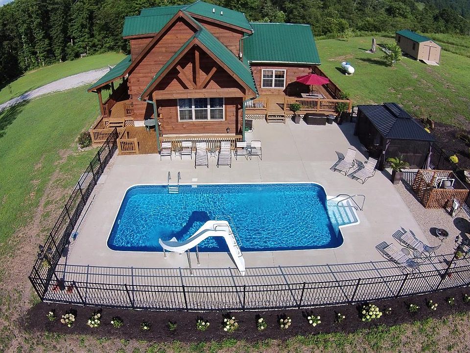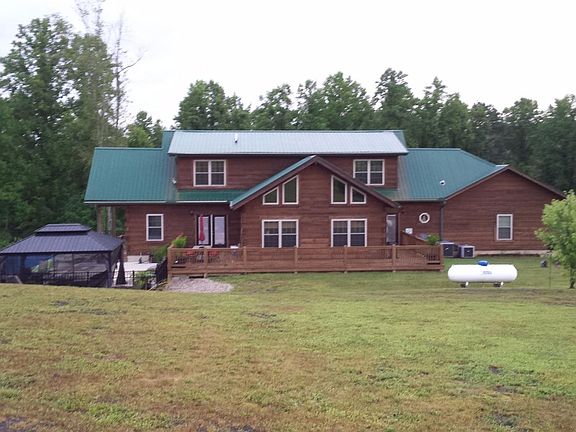 Beautiful, Spacious Log Cabin That Looks Like New And So Much To Offer! Situated On 14.32 Acres With Approximately 3-4 Acres Cleared And The Rest Is Wooded..Could Be A Hunter's Paradise..Deer, Turkey, Etc. Logs Are 12 Inch, All Wood Walls And Ceilings, Stairs, All Hardwood And Tile Floors. Offering Open Concept, Huge Great Room With Stone Fireplace Floor To Cathedral Ceiling, Large Fully Equipped Kitchen With Cherry Cabinets, Master Bedroom Suite Is On Main Level With Tub Plus Walk-In Tiled Shower, Laundry Room, 2 Bedrooms On Upper Level, Office Area, Family Room In Loft Area. All With Open Beams And Exposed Duct Work On Upper Level. Front Porch And Warp-Around Deck, Lots Of Large Windows For Natural Light. Beautiful Fenced And Heated In-Ground Salt Water Pool And Area With Gazebo Is Great For Entertaining. Also Unfinished Basement Plumbed For Bathroom Is Ready To Finish Your Way. Just Off The Road But Has Total Privacy. Call Today To Make An Appointment To View This Unique Property