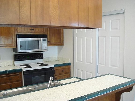 You will love this one story, beautifully upgraded "end unit" 2 bedroom, 1 bath condo with apx. 800 square feet centrally located in Santee. One car garage (shared double garage) with electric door opener and lots of storage space. Laundry room conveniently located a few feet from the front door of the condo. $1250 Rent, $1100 Security Deposit. Available asap one year lease terms. Walk to the new Santee Trolley Shopping Center.....it is just across the street from this property. Water, sewer and trash service are included in the rent. Features include; central air conditioning, garage, community pool, built in microwave, dishwasher, new floor coverings. One small mature pet (under 40 pounds) will be considered with additional $250 security deposit.