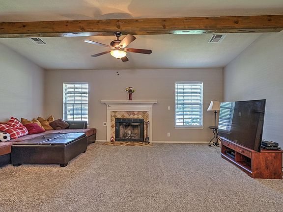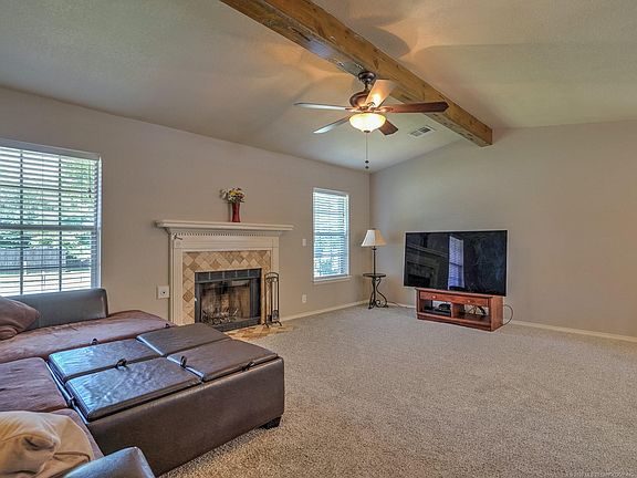 Hurry before this affordable remarkable home in Owasso is gone! Splash this summer in your own pool! This home has updates of fresh paint and carpet! Nothing to do other than bring a towel and your bathing suite. Beamed living room ceiling and tumbled marble back splash.