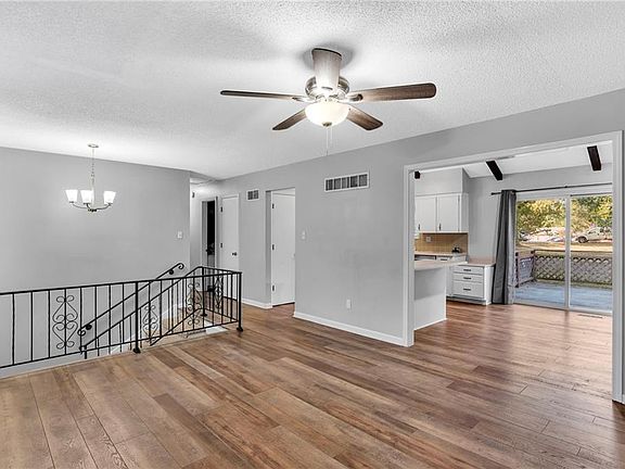 This split-level home features three bedrooms, three full baths and new LVP flooring throughout. It has a large living area adjacent to a bright kitchen with vaulted ceilings and unique wood beams, plus a dining area that walks out to a deck. The lower level includes a wood-burning fireplace, a spacious laundry room, and access to a beautiful backyard with a nice-sized patio.