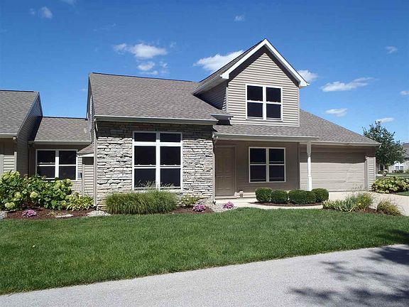 Best Villa in the bunch...last villa nestled up against the woods....new flooring...all new stainless steel appliancies...dishwasher,stove,refrigerator / 2 Full Bath / master on the main floor with also a bedroom up and a HUGE den..computer area up/2 car garage...new garage door on order.....GREAT LOCATION / Pristine Villa / Walk to Solomon Farms...spacious great room with FIREPLACE...Private patio out sliding glass door ....big windows..vinyl and stone exterior / vaulted ceilings / walk to the YMCA / quarterly dues for exterior maintenance,mowing,trimming,fertilizing,snow removal,roof,and paint / laundry room main floor