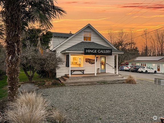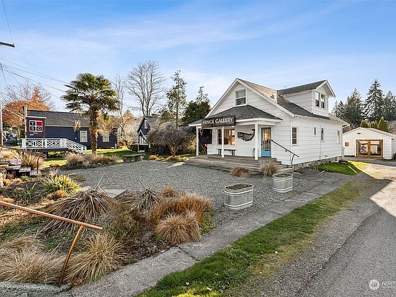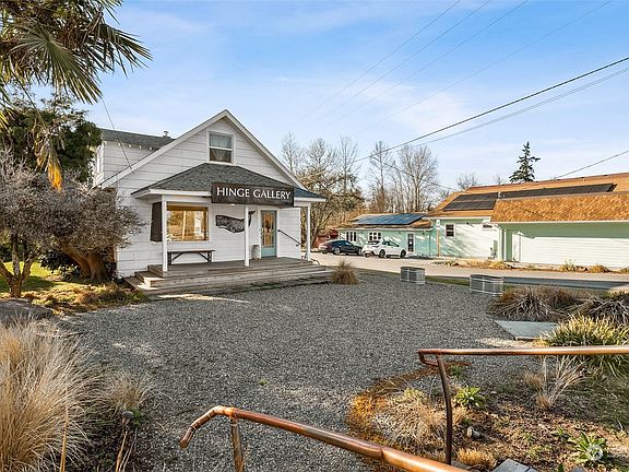 The renowned Hinge Building is ready for its next owner! Abundant opportunities await with this rare find in the heart of Vashon Island. Community business overlay allows for myriad options: This is Residential+Commercial=Live/Works; Food Service, Childcare/Medical, Art Gallery, Retail. Main space: Enter into courtyard w/ pebble garden patio, ironwood front porch (dine al fresco?) foyer greets open area w/ fireplace, bath+kitchen w/ pantry/back parlor for private office/studio space. Step out back for another potential seating area. Upstairs one bedroom apartment has served as an Airbnb and long-term rental. Back building is a detached studio workshop. These opportunities don't come knocking every day...