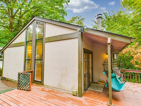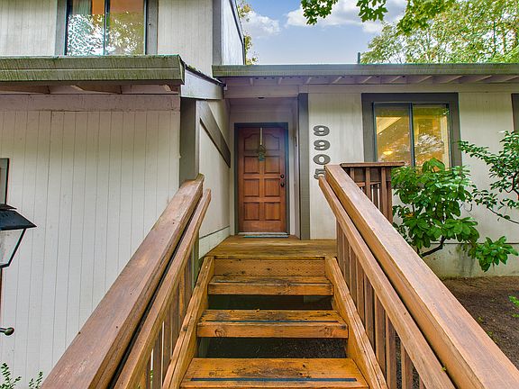 Tranquil & private setting w/common area trails & creek. Updated kitchens & bathrooms. Gourmet kitchen w/slab granite, pantry, & stainless appliances. Open living/dining room w/vaulted ceilings, fireplace, & skylights/solar tubes. Family rm w/new gas fireplace & wet bar. Step out slider to private deck surrounded by trees. Newer H2O htr. Excellent location close to freeway, Lewis & Clark, shopping & downtown.