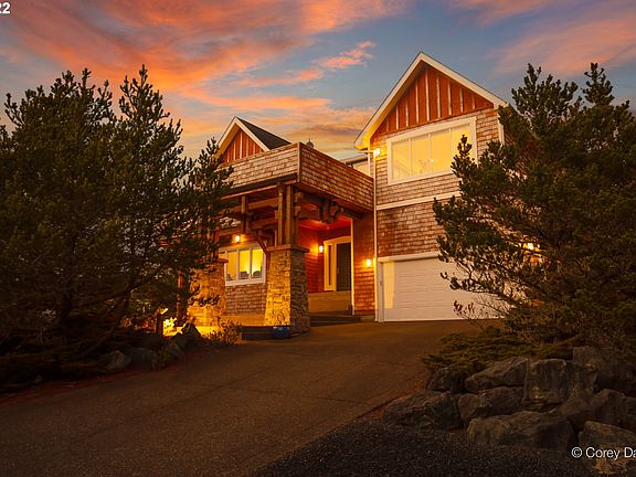 Exquisite craftsmanship shines in this custom built, Pine Ridge home. Room for everyone, plus space for live/work with 5 bedrooms and a library/media room. Reverse floor plan to optimize ocean, Neahkahnie Mt., and territorial views. Huge deck for outdoor living and dining. Cherry floors, vaulted and extra high ceilings, two fireplaces, expansive primary en suite with ocean views... check out the 3-D tour and video here, then make an appointment to view in person.