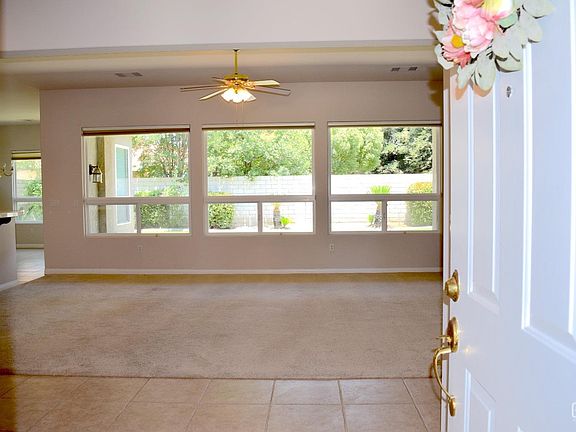 Immaculate move-in ready home in the quiet and private gated community, The Greens at Seven Oaks. This beautiful home boasts fresh paint, 2,040 square feet of open concept living space and features a spacious kitchen with tile flooring, a breakfast bar and plenty of storage space. The master bedroom is complete with two walk-in closets, and separate shower and soaking tub. This home also features an over-sized, 575 foot garage. The exterior has a well-maintained backyard with beautiful rose bushes and inviting landscaping. This highly desired 55+ community offers endless amenities to include golf putting, two-clubhouses, a community swimming pool and spa, a fitness center and much more! Third bedroom is office. This community is located near great entertainment, shopping, and dining. Do not miss out on this opportunity!