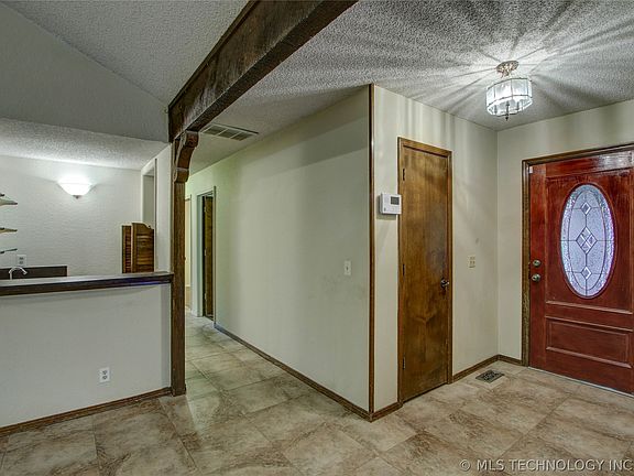 Spacious home nestled in a quiet neighborhood with mature trees in Bixby School District. This home's entry points are all one level with no steps. Large master suite with 2 large closets and walk in shower and plenty of room for an office space. Gorgeous vaulted & beamed ceiling greet you in the living room ehich faces the formal dining area. You can enjoy your morning coffee in your sunroom facing the backyard. This home is near the retail shopping and restaurants Along 111th & Memorial. The Large tool shed stays as does the generator and storm shelter located in the garage. The Stainless gas range oven, dishwasher, and washer and dryer all stay - fridge is negotiable. Property to be sold AS IS. Priced below comps to allow for updates.