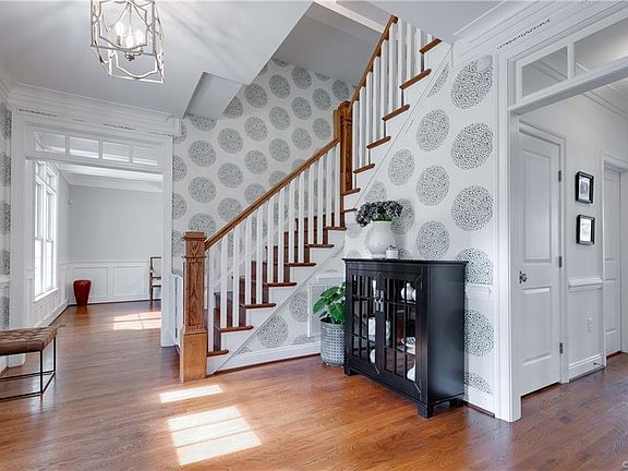 Unique opportunity to own a stately home with a fresh new design along the desirable River Road corridor! Floor plan showcases airy light-filled rooms w/9' ceilings and transoms. Multiple "flex" spaces are perfect for evolving needs. Impressive upgrades include extensive millwork & beautiful hardwood floors. The elegant foyer & banquet-sized dining room with coffered ceilings display exceptional craftsmanship. French doors open to a library/reading room with beamed ceiling & built-in shelves. Bright gourmet kitchen includes custom white cabinetry & Wolf/Miele appliances. Light-filled family room features a lovely wall of windows & gas fireplace. Rear hallway leads to the 1st floor bedroom w/full bath AND sunny home office. Enviable mudroom with wainscoting is the ideal "drop zone". Second floor features a gorgeous primary bedroom w/sitting area, spacious marble bath & 2 walk-in closets. Three additional bedrooms each have walk-in closets & adjoining baths. Covered front porch, rear patio w/stone fireplace & extensive new landscaping! Over $50k in upgrades makes this home truly better than new! Located in the beautiful, popular & fun Riverlake Colony neighborhood near Collegiate.