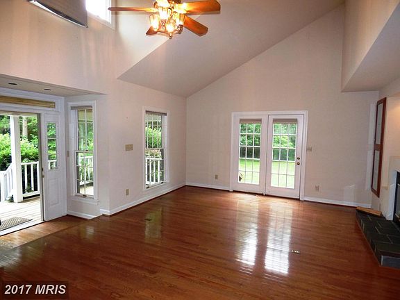 Charming 3 bedroom 2 bath rambler on almost 10 acres surrounded by trees. Gorgeous setting. Unique open custom design. Living and dining room with high ceiling. 2 sided fireplace. Custom built-ins. Large kitchen with updated cherry cabinets. Hardwood floors. Newer AC unit. Security system. Nice and bright. Easy commute, only 5 miles to Fort Belvoir. Lawn service included in rent. Must see!