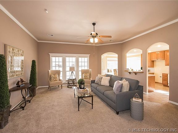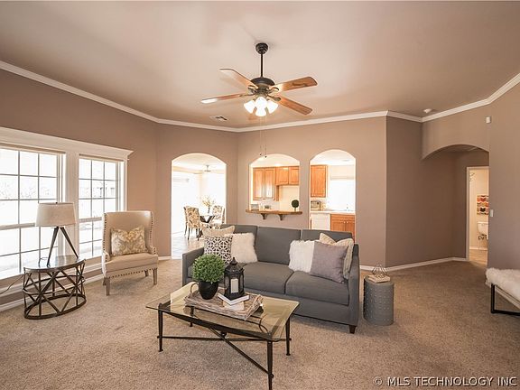 Beautiful home with large living open to kitchen. Lots of Windows. High ceilings with crown molding. Split bedroom plan. Huge Laundry with sink. Solar lighting throughout home. Two and a half car garage with work area and full sprinkler system.