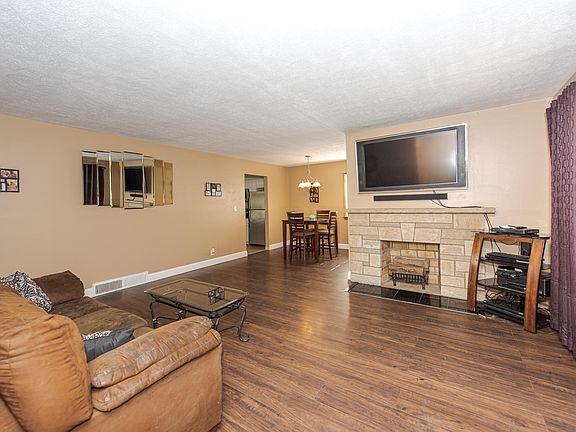 Check out this three bedroom, 1 bath spacious ranch with a stone fireplace, including a beautifully finished family room in the basement for your leisure. The kitchen contains white cabinets and black counters along with Stainless steel appliances and a matching backsplash and updated lighting. Talk about Storage it is in abundance in the basement for your needs. The back yard has an above ground pool with a deck. Roof is only 3 years old.
