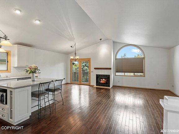 Welcome to this stunning Alaskan retreat! This updated, home offers a bedroom with a spacious adjoining bath on the first floor. Immediately when you reach the second floor you are greeted by an open concept space with high ceilings, stunning hardwood floors, a fireplace, and custom kitchen. Large windows allow for tons of natural light throughout the space. Two additional bedrooms onthe upper floor offer convenience and could be used as bedrooms, an office space, and more! On the back of the home you will find yourself in a quiet yard surrounded by a privacy fence. The back patio and small lawn are perfect for relaxing or entertaining.