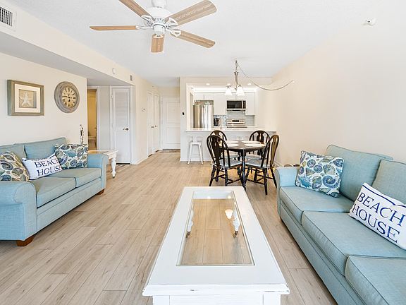 Cote d'Azur is calling... As soon as you enter this luxurious property at Seapointe Village at Diamond Beach. The coastal views from your balcony, the southern breezes along with the Mediterranean landscaping that surrounds the complex you will feel like you are in the south of france. This high-end, generously proportioned, 1-bedroom, 1 bathroom condo sits gracefully on the 2nd floor, boasting expansive, breezy panoramic vistas. The modern interior showcase exquisite craftsmanship, from the white gray flooring to the elegant Cintilante Classico Marble that seats 4 comfortably and the seafoam glass tile backsplash adds a touch of sophistication to the kitchen which is equipped with high-end appliances, perfect for culinary enthusiasts. With an open-concept layout that seamlessly combines the living, dining, and kitchen areas, maximizing space and natural light. The bedroom is a tranquil retreat, adorned with premium bedding, designer furnishings, and ample closet space. The bathroom boast ample amount of space and is wheelchair accessible. The newer windows and doors not only provide airflow but also enhance the sleek design. A prime location with steps to the magnificent beaches, dining and entertainment plus a host of superior resort amenities, residents can enjoy access to a state-of-the-art gym, multiple pools, tennis and basketball courts, and during those fall getaway weekend you can enjoy smores by fire and an amazing indoor pool. Only for the discerning buyer!