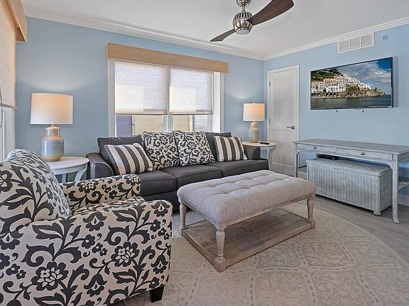 Welcome to Centre Court 221. This spectacular, sun filled unit sits in a quiet corner location and has been beautifully renovated over the past few years. Upgrades include a newer HVAC system and hot water heater, new Italian porcelain flooring throughout, renovated kitchen and master bathroom, new wainscot, new trim and crown molding throughout, closet doors, skim coated ceilings and new paint and window treatments. New siding, windows and sliding patio doors were completed by the Home Owners Association in 2019. This home is being sold fully furnished and boasts many upgraded furniture pieces, including a king master bedroom set, a queen pull out bed in the Living Room and a rare double vanity sink in the master bathroom. This unit has been lovingly maintained and utilized by the Owners as a second home and has never been rented but could rent for $4,100/week during the peak summer season. Must See! Call to schedule your appointment and make this your summer home for 2023. Will not last!! Call for details and or to schedule your appointment.