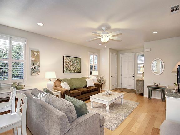 Experience vibrant living at the sought after 55+ community of Glenbrooke! Enjoy amenities from the clubhouse, pool/spa, tennis courts, fitness center, and cultural activities without leaving the community! This immaculate single story home features a light and bright floor plan with 2 bedrooms and 2 full bathrooms, inside laundry room and whole house water filter system installed. Open concept kitchen includes upgraded granite counter tops, convenient pull-out drawers, and custom plantation style shutters to match the rest of the home. Master bedroom has an en-suite bath with double sinks, spacious shower stall and a large walk-in closet with built in shelves. Step outside to the private patio and enjoy the custom landscaping with a paver patio, water fountain, verdant greenery along with several strategically placed lemon trees for additional privacy and serenity.