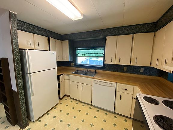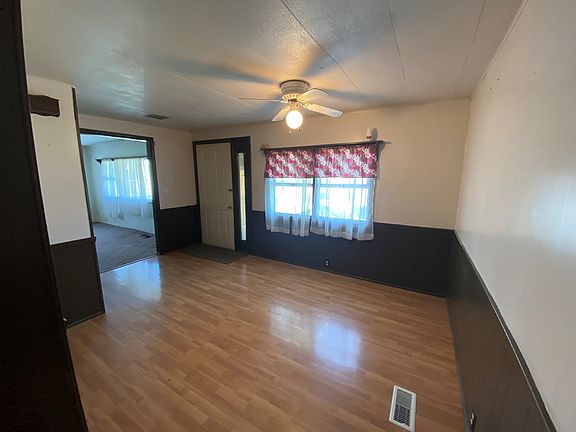 Double-wide trailer with front porch, back covered patio, and detached garage with workshop. There are 2 adjoining parcels, one with a single-wide trailer and the other with a double-wide trailer, that could be purchased as a package. Call the listing agent for more details or to schedule a tour.