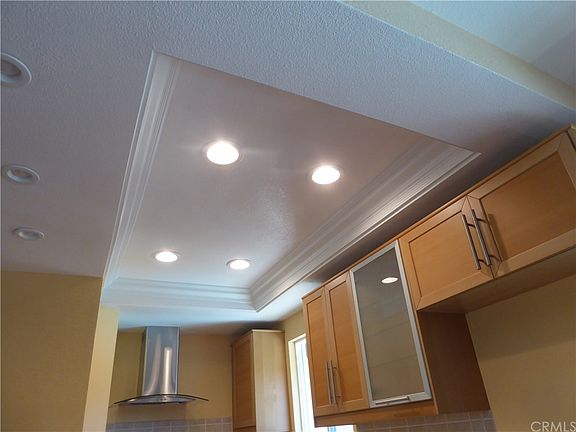 The kitchen has been updated with tile counters, tile backsplash, updated wood cabinets, stainless steel sink, stainless steel built-in oven & stove, custom stainless steel fan hood and stainless steel dishwasher. There is LED recessed lighting throughout the entire unit, new energy star HVAC system, new LowE energy star dual pane vinyl windows, new LowE energy star dual pane vinyl patio sliding doors, new upgraded baseboards, fresh interior decor paint, the baths been recently updated with granite counters, new sinks, new fixtures, new water saving faucets, new water efficient toilets and more. There is new laminate flooring in the entry, kitchen and dining area. There is new carpet flooring in the living room and bedrooms. There is side by side washer and dryer hookups inside the unit, larger spacious covered exterior terrace/deck, new garage door and opener with remote control for the detached 2 car garage. The property is close to the 22 & 405 Freeways, shopping is within walking distance. There is a security automatic access driveway gate, front walk thru security gate, community pool/spa, low HOA fees, the HOA pays for exterior common area maintenance, water & trash.