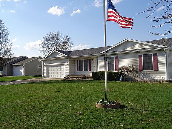 3 bedrooms with 2 bath 2-car att garage ranch. Cathedral ceilings and open floor plan. Living room and Dining have laminate Hardwood Floors and Baths have Ceramic tile! Oak cabinets and trim thru out. Newer carpet in Master bedroom. Private master bath. Exceptionlly well maintained and like new condition. BIG BACK YARD! 10 x 12 Deck! Conveniently located less than a mile to Lake Sara, and approx 3 miles to town of Effingham!