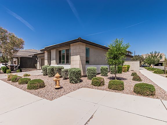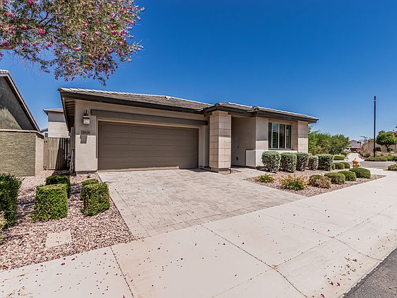 Welcome to the desirable Eastmark, where this beautiful rental home awaits you! Nestled on a corner lot offering 3 beds, 2 baths, and a 2-car garage w/paver driveway. The interior exudes sophistication with abundant natural light, stylish light fixtures, neutral paint, wood-look tile flooring in common areas, and plush carpet in bedrooms. If entertaining is on your mind, the inviting open layout is sure to impress! The impeccable kitchen boasts SS appliances, granite counters, a subway tile backsplash, a pantry, wood cabinetry w/crown molding, and an island w/breakfast bar. Enter the primary bedroom to find an ensuite with dual sinks & a walk-in closet. The private backyard, with a covered patio, is the ideal spot to relax or have a fun BBQ. What's not to like? Pack your bags and move in! Renter is responsible for all utilities. No smoking allowed.