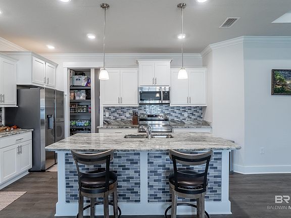 ASSUMABLE VA LOAN OPPORTUNITY WITH GREAT INTEREST RATE TO VETERANS ONLY! Great Location and features galore! This beautiful, open floor plan is 2033 sq. ft. with 3 Bedrooms, plus a large study and 2 and a half baths. Only minutes from our sandy white beaches and OWA theme park. Inside you'll find this home has been immaculately maintained and equipped with 9' ceilings throughout, tray ceilings finished with crown molding and ceiling fans, and granite counters in kitchen and baths. The primary bath has a tile shower and a separate drop in tub with tile surround, double vanity and a large walk-in closet. You'll relax on the covered front and back porches.Large 2-Car+ garage with side entry golf cart access. This home does have an irrigation system already in place and is GOLD FORTIFIED! Glenlakes is a fun golf community that you can have full access to when you purchase a membership. Don't miss out on this beautiful home!