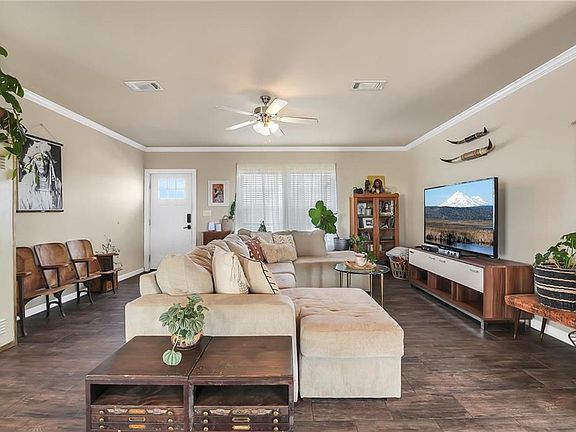 Do not miss out on this home in Hammon, Oklahoma On 5 Acres! Walking in you will notice the open floor plan! You have a spacious living room area that is open to your kitchen and dining! The kitchen has stainless steel appliances which will all remain with the home and also features a pantry! In the dining room you have plenty of space for your family gatherings and it has built ints for your dishes or a coffee bar! There is also a sliding door giving you access to a spacious back deck! From the dining you can also go to your generous sized primary bedroom complete with a walk-in closet and a large primary bathroom. Off of the kitchen you will find your second living space which also features a fireplace. From there you will go to a hall that has the other two bedrooms which are both great sized with nice closets, a hall bath with a separate toilet room, and a large laundry room with built-ins and washer and dryer to remain with property. Don't forget the 30 x 40 shop/garage!