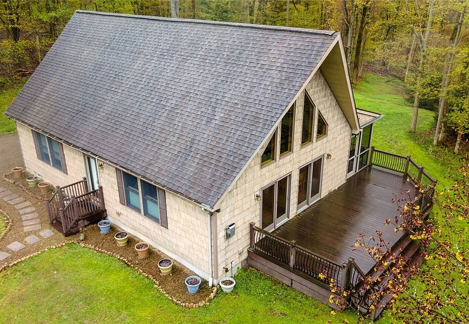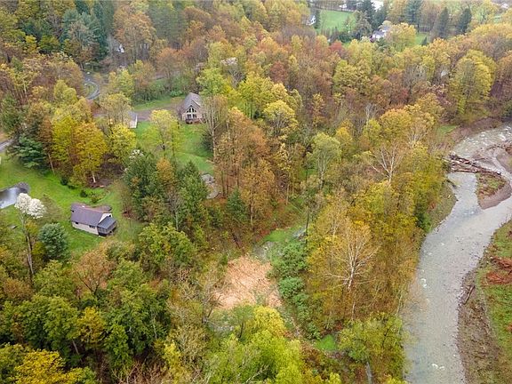 Enjoy life in the country in this 2006 built 3 bdrm, 3 ba All-Season Cape A-Frame style home on a expansive 10+ acres w/a pond & views to the valley of 18 mile creek that meanders through the property w/ gardening areas & birding attractions. Incl is a separate turnkey 2 bdrm, 1 1/2 ba rustic knotty pine walled, wooded floored cabin which could be seasonal guest quarters, hunting cabin, studio-workshop, etc. The main house features all HW flrs, Anderson windows, a screened porch & expansive GR w/ a vaulted ceiling that opens to a trex built deck & nearby slate patio. Gas FP, fully applianced Kit, ceiling fans & finished open loft area add to it's charm. Primary 1st flr bdrm w/ full ba, additional full ba & laundry/Mudroom on 1st flr. 2nd flr features 2 bdrms, another full ba w/ a study/sitting area that looks out to the lush landscape. The full basement has high ceilings & outside door access. Mechanics incl, propane forced air heat, centralA/C, whole house generator, electronic sec. syst & cable tv, internet. 2 Car garage. Close to amenities of the suburban & downtown WNY areas. Eden Schools. Sqft differs, county records do not reflect 2006 built home. Offers due Thur 5/11 @ noon.