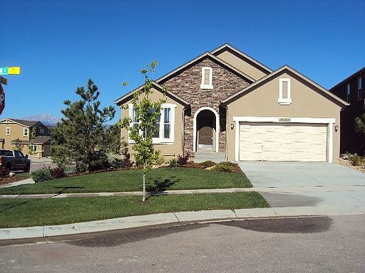 Former builder model. Top quality amenities. Stainless steel appliances including gas stove & side by side fridge, central air, speaker system, slab granite counter tops, beautiful hardwood floor, covered deck w/ surround sound & Pikes Peak views. Main level living, walking distance to pool & clubhouse, 3 car tandem garage. Master bedroom w/ surround sound, recessed lighting, plantation shutters, crown molding. Wet bar & gas fireplace in basement. Kitchen has under counter lights & large pantry. Large backyard w/ concrete patio off deck & professional landscaping. Formal dining area w/ built in shelves. Much more!