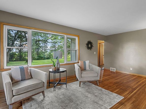Anyone would be blessed to call this property home. Nestled on over 3 acres, this charming one-and-a-half-story residence boasts 4 spacious bedrooms, a full bath, and a convenient half bath. The interior shows off its warmth and charm with hardwood floors. One of the main floor bedrooms features a built-in bookshelf that offers the perfect space for productivity or relaxation. Other features that make this property truly special include a two-stall garage with a convenient entry into the kitchen, a turn-around parking pad for easy maneuvering, and its surroundings of lush green space and beautiful trees. Whether you're enjoying the expansive outdoor space or the cozy, thoughtfully designed interior, this home provides a retreat for all who enter.