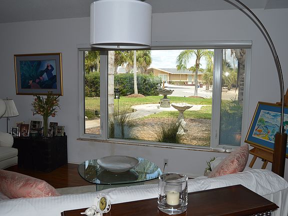 House and yard nearly completely remodeled. New storm windows throughout except the sunroom. French doors in master bedroom step out to back deck. New air conditioning Nov. 2015. New hot water heater 2016. 10,000lb boat lift. Beautiful palms. Two master bedroom suites. Great cul de sac expansive water canal view.