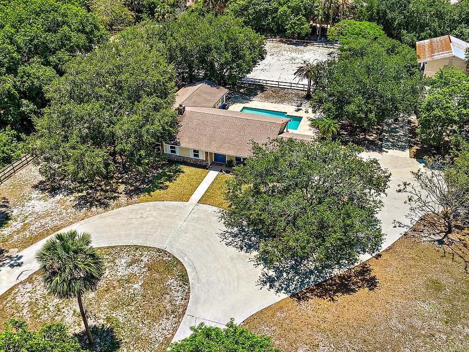 Nestled on a privately gated 2-acre lot, this rare gem boasts a 3 bedroom, 2 bath pool home along with a detached in-law suite, a 3-stall horse barn, and a gated horse pen. Step outside to the pool area, perfect for relaxing or hosting gatherings with family and friends. The detached in-law suite offers additional living space, ideal for guests or as a rental opportunity. Equestrian enthusiasts will delight in the presence of the 3-stall horse barn and gated horse pen, providing the perfect setting for horse lovers to indulge in their passion. With newer AC, hurricane impact windows, and a new water softener. Great personal home or high end rental opportunity with tons of income potential. NO HOA & NO RESTRICTIONS, With some TLC this property can be your dream home! Close to shopping & Turnpike, call today to schedule a tour.