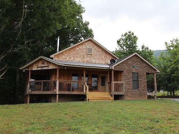 Beautiful home on Lookout Creek with 2 acres, detached garage, stacked stone, cedar shake exterior, custom cabinets with granite counter tops, hardwood floors,corner wood burning FP., cathedral ceilings in great room, eat in kitchen with bar, custom built in desk and cabinets, wrap around porch and screened porch to enjoy the beautiful view and the creek.