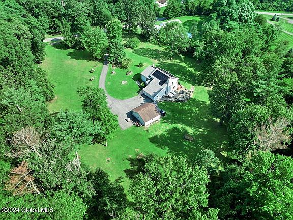 Custom Contemporary Country Home enjoy privacy with over 5 acres and only 12 miles to DT Albany. Step into bright and spacious living with gleaming cherry wood floors and custom high-end features throughout. Features include first floor bedroom, Primary Bedroom with extra bonus space perfect for office, gym, expanded closet or sitting area, Primary bathroom with spa setting and Swedish Sauna! Finished Basement has home theater and soundproofed space, billiards area, separate gym and office area. Exterior has attached and detached garage for 4 spaces. This home is the perfect blend of luxury, and country living w/ lush fruit trees and gardens, stone patio. Solar is owned which means only savings to you. Outdoor wood furnace for even more energy efficiency if desired.