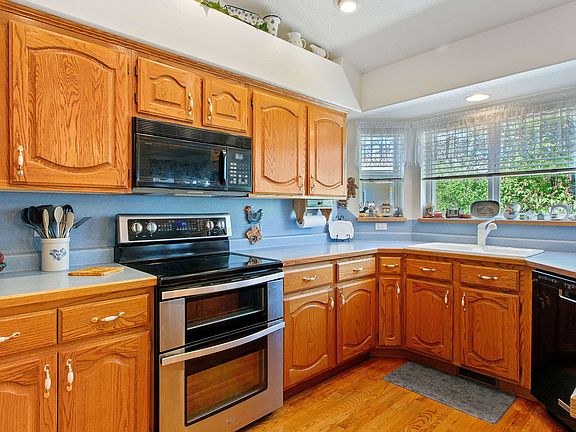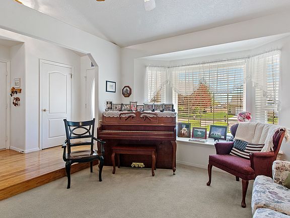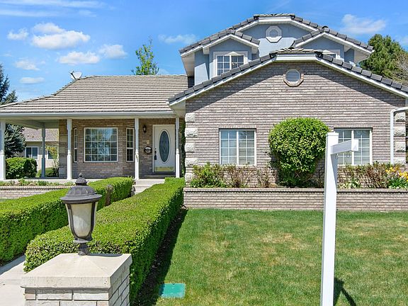 Solar home on corner lot has mature landscaping that includes two blue spruce, one ponderosa pine, two apple and an ornamental cherry tree...automatic sprinkler system, brick, stucco exterior, tile roof. Gas heat with central air recently replaced, new appliances. Central vacuum, dishwasher, disposal, vaulted ceilings, built-in bookshelf/entertainment center. Spectacular views. Quiet, friendly neighborhood. You'll love the bay windows, front and back!