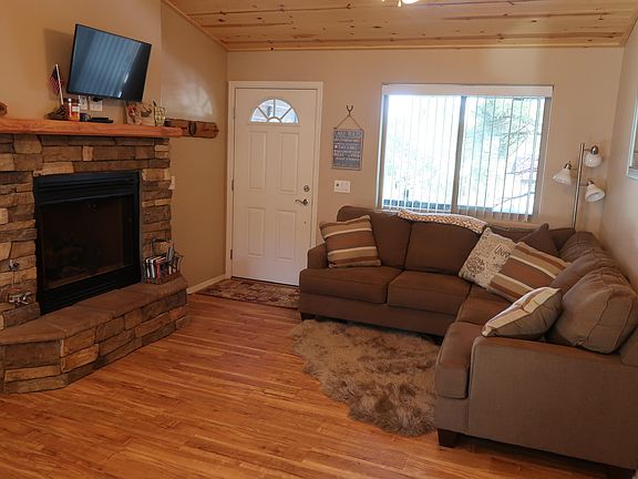Looking for your Cozy Cabin in the woods? Well, look no further! This 2 bedroom 2 bath cabin tucked deep in the lot for privacy has many extra features including Composite/Maintenance free decking on front and back deck, back deck has been extended to enjoy those cool Summer nights. 1 car garage extra tall for additional storage, plus an additional roll up door for even more storage..... fishing boat, side by side and more. Inside you will find the wood/gas burning fireplace with custom mantel. Laminate throughout the home. Granite Counter Tops in Kitchen, T&G in Living, Dining and Kitchen Area. Plenty of cabinets and counter tops in this Kitchen. Light and Bright!! Cultured marble in baths with tub/showers. Close to National Forest, shopping and the hospital. Call today.
