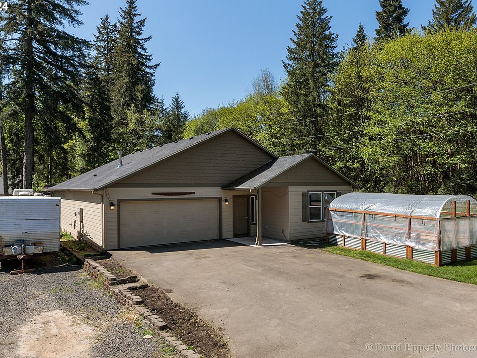 Step in to this 2020 single story ranch home located on a 1/4 acre corner lot in Vernonia! This 1,979 sqft home features 4 bedrooms, 2 full baths, open living room to the kitchen and dining area! Kitchen features a large island that includes an eating bar, kitchen sink, dishwasher, and cabinets. All stainless appliances, gas range, and a large pantry! Dining area has a sliding glass door that takes you to the partially covered back patio. Primary bedroom has attached bathroom with double sinks, garden tub, stand in shower, separate toilet room, and a walk-in closet! The 1/4 acre allows room for the 40x25 shop, a green house with raised garden beds, RV parking, and great yard space! Schedule your private showing today!