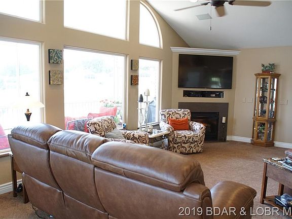 The valley of green grass that flows down to the Lake & small lakes with fountains sets the stage for a gorgeous home that shows like a display. The large Atrium windows & covered deck shows off the serenity & beauty of this location. There are two great unique features of this home, the large 12X30 Boat slip & the Large 2 Car Garage. Warm colors, new carpet & Kitchen with Stainless Steel appliances, 42" Custom Cabinetry, Center Countertop Island with open floor plan are just a few great features of this home. The main level also offers a Den/Office that can also be used as a fourth bedroom, Gas fireplace in living room (again with great views). Laundry has two entrances, one from hallway & the master Bedroom walk-in closet. large Master suite is lakeside and bathroom has double bowl sink, glass walk-in shower and plenty of lighting. The finished walkout lower level is custom finished, with a 2nd deck, great views, 2 bedrooms, family room wet bar, plenty of room for entertaining.