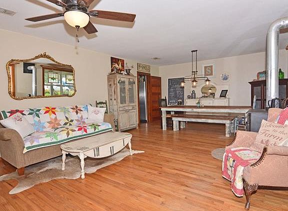 95+/- acres w/mix of grazing/hay/hunting areas. 3 stocked tanks & wet weather creek. Orchard w/ drip irrigation, roping arena w/ calf chute, 2 shops w/concrete floors, 2 stall horse barn w/tack room, cattle pens w/loading & squeeze chute, metal hay barn, chicken coop w/broody area on concrete floors. 9 stall pig pen w/water nipples, w/2 yards & loading chute. 2700+/- sq ft, 4 bed/2 bath, 2 living. 1920s farmhouse/remodeled. Raised beds (organic) w/drip irrigation. Large front/covered porch.