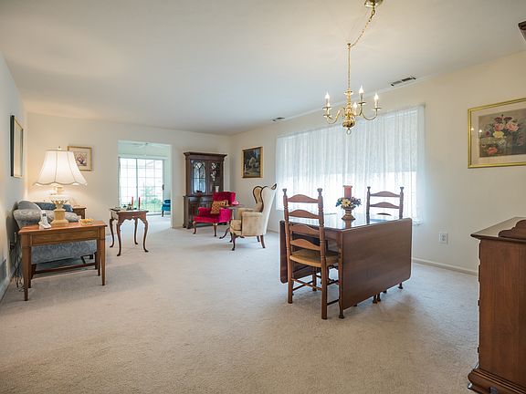 Welcome to this immaculately maintained, two bedroom /two bath Davenport model home in the sought after 55+ community of Holiday Village East. As you enter into the foyer area you will feel right at home. Your first stop is the kitchen with newer flooring, updated counter tops, newer appliances, garbage disposal an abundance of cabinets, pantry and large sunny window. You follow that into the open living /dining space brightly lit with natural light by a bank of windows. Then move into the den area just right for relaxing under the ceiling fan with a good book or watching your favorite programs. From the den you access through the sliding glass doors the patio, with automatic retractable awing for shaded comfort. As you move down the hall you'll find the more than ample size guest bedroom with closet, guest bath with tub complete with heat lamp and updated flooring. There is an over sized hall linen closet for storage and you're conveniently located laundry room is also in the hall. At the end of the hall you will be impressed with the size of the master suite which features two wall closets, a ceiling fan, full bath with stall shower, newer flooring and heat lamp. The entire house is done in a neutral color paint and carpet giving it an open, airy feeling. The garage features 2 year automatic opener and pull down attic storage. This great home also features a sprinkler system and 2 year hot water heater. Holiday Village East offers a wonderful lifestyle with busy clubhouse, outdoor heated pool, bocce, tennis and pickle ball, trips and more. Close to shopping, dining, Route 295 and the turnpike. Just a short trip to the city or shore points. Along with a low monthly HOA! Put this home on your must see list