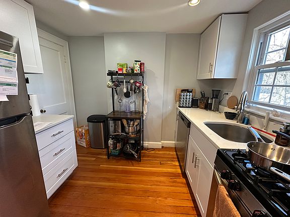 2 Bedroom 1 Bathroom Floor Level: 1st and 2nd floor (separate exclusive basement) Utilities: Tenants pay for Gas and Electricity Pets: Negotiable with a fee Parking: 2 car tandem parking in driveway Broker Fee: Equal to one months rent paid by applicant Laundry: In-Unit Available: June Duplex! Amazing location! Great area! Steps to Bus Line and quick drive to Route 2 or I95! On Bike Route! Recently renovated! Apartment features: living room, dining area off of kitchen, galley kitchen with stainless steel appliances granite countertops and new cabinets, recently tiled bathroom, large bedroom with great closet space, second bedroom is a good size or can be used as a great sized office space, hardwood floors throughout, exclusive basement usage for storage and laundry, updated back porch and huge yard, easy parking in driveway!