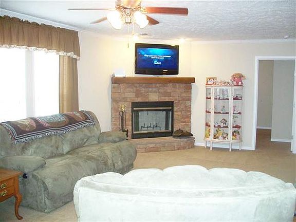 Bring the horses! This would make an excellent mini farm on 9.38 ACRES! Mr. and Mr. Clean live here! This beautiful 3 bedroom 2 bath built in 2011 features open concept floor plan; very large LIVING ROOM open to spacious KITCHEN with the biggest ISLAND I have ever seen in a home of this size, smooth top stove, built in microwave, dishwasher and refrigerator, gorgeous DINING ROOM and spacious DEN with corner FIREPLACE, BIG SCREEN TV will convey with home, all walls are drywall, MASTER BEDROOM is very large with master bath suite to include double sinks, double seated shower, built in linen closets. huge WALK IN CLOSET, ceilings fans, secondary bedrooms both great size, HALL BATH very large with sink and vanity, full tub/shower combo, large OFFICE or could be converted to 4th bedroom, HUGE LAUNDRY with laundry sink and room for not only washer dryer but freezer and more, all air vents are in ceiling, all electric, new septic installed when home was placed on property, city water, new metal 22x26 GARAGE/WORKSHOP with 10 FT ceilings with garage door and separate entrance door with ELECTRICITY! This GORGEOUS piece of property has been meticulously mowed and cared for. Almost all of it is cleared and would make a very special place to call home. Also comes with a nice 12x24 storage building with electricity. There is so much potential here with 9.38 open acres! Only @ 1 acre wooded. This lovely and spacious home has too many upgrades to mention and you must see in person! Be sure you drive past the home and garage around the bend to the back side of property and view the beautiful land and CREEK. Yes...this property borders a beautiful creek. Country living at its best!