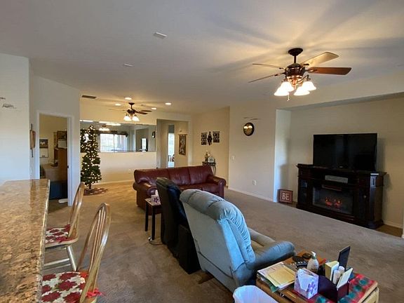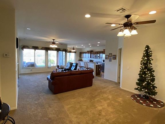 Three bedroom PLUS den! This Jasmine floor plan has Southeast mountain and valley unobstructed views, Evening sunsets are amazing framing Flattop Mesa. Step through the front door and immediately enjoy the large windows framing the view straight through to the backyard. The open floor plan features a very spacious living room with large windows framing the beautiful views of the mountains. The kitchen has tons of upgrades, a center island that divides the living area, pull out shelves in the lower cabinets, slide in GE stainless steel range matches the stainless side by side refrigerator, dishwasher and microwave. Ceiling fans in every room adds air movement especially enjoyed in the summer months. Exterior of home was recently repainted adding to the curb appeal and assuring you many years of enjoyment. Come take a look. Most furnishings are available with the house or will be removed at buyers option.