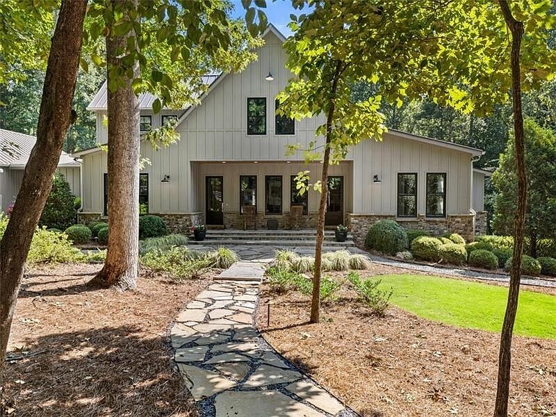 An incredible property that temps the senses with exceptional architectural design while maintaining a harmonious connection with nature. The custom-designed home by award-winning architect, Nick Lee Architecture is tucked amongst hardwood trees on 14 acres with access to a spring-fed lake. The gated property includes a four-board fence (with wire fencing) around the house and pool and on the perimeter of the property. The front pasture includes a fenced garden area and garden shed. The aggregate driveway meanders through the hardwood trees, perennials, and woodland gardens as you reach the house. Modern architecture with a touch of farmhouse greets you with a cedar and bluestone-covered patio. As you enter the front door, the house is filled with natural light, soaring tongue and groove wood ceilings, and an open floor plan. 10' foot ceilings, 8ft solid core doors, and hardwood floors, open wood/metal staircase were all meticulously selected for the house. The kitchen features a 14-foot island with a honed natural stone countertop, KitchenAid gas cooktop, double ovens, and built-in refrigerator; Alderwood custom cabinetry, four pantry areas, and overlooks the expansive great room. The pub-style recreation area includes custom-built cabinetry, two beverage centers and opens to the 600 sq ft screened patio. The primary bedroom located on the main floor has two closets each with custom closet organization, spa style bathroom with heated polished slate floors, a soaking tub, a frameless style shower, and dual vanities. Two additional guest rooms on the main include large closets, tall ceilings, reclaimed wood trim shiplap, and access to a dual-entry bathroom with an oversized glass shower and vanity area. A large loft area overlooks the two-story great room creating a seamless flow for entertaining or guest overflow, office, or recreation area. The large mudroom/laundry center on the main includes two built-in desk areas with cabinets and quartz countertops, storage cubbies with vintage locker fronts and exterior access to the garage space, and a covered breezeway to the outdoors. 4th bedroom on the main floor could also be used as an office or craft room. The screened porch with cedar decking and ceiling includes outdoor speakers, and ceiling fans and overlooks the gorgeous 15x40 pebble tec pool and spa with bench seating, tanning ledge, and self-cleaning floor skimmers. The multi-level pool deck includes several dining and lounge areas and a detached covered bbq area with a built-in smoker/grill and a refrigerator. The partially finished terrace level includes a full bathroom, a sitting area with a built-in bar, and retro-style appliances. Over 2600 sq ft of unfinished climate-controlled storage space on the terrace level includes a two-car garage with sink, and multiple work rooms. The property extends to the 5 Acre Lake and is spring fed and stocked with fish. A small fishing hut and private dock complete this breathtaking property.