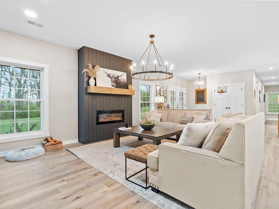 Built in 2021, it boasts a spacious open-concept layout that's perfect for both everyday living and entertaining. Enjoy the serene views from your front and back porches, and cozy up by the brand-new fireplace (installed in 2024). With a durable metal roof and siding complete with a lifetime warranty, you can rest easy knowing your investment is protected.