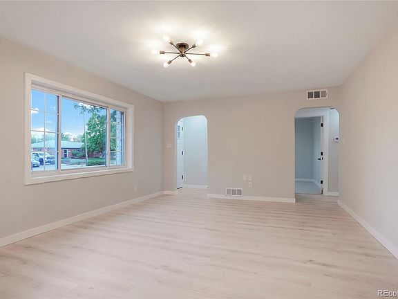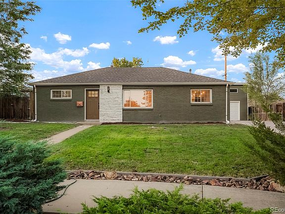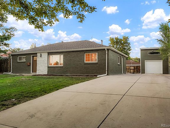 You'll love this updated ranch-style home in an amazing location, featuring a large lot with ample parking space for vehicles and toys, plus an oversized garage with a workbench and loft! Fully reimagined by Maverick Design, this 3-bedroom, 2-bathroom home is a must-see. The open floor plan is filled with beautiful natural light. Updates include new interior and exterior paint, laminate flooring, tile, and carpet throughout, two beautifully updated bathrooms, new kitchen cabinets, quartz countertops, and stainless steel appliances. Additional upgrades include new light fixtures, plumbing fixtures, door hardware, a garage door with a new opener, and more. The sewer line has been replaced, and the home also features a new water heater, air conditioner, and furnace! Enjoy the start and end to your day in the bright primary bedroom with its very own en suite bathroom. The South-facing front of the home and driveway pours natural light into the home and will cut down on shoveling during the winter! Located just blocks from restaurants, coffee shops, grocery stores, parks, schools, shopping, and entertainment, with easy access to I-25, taking you anywhere you need to go.