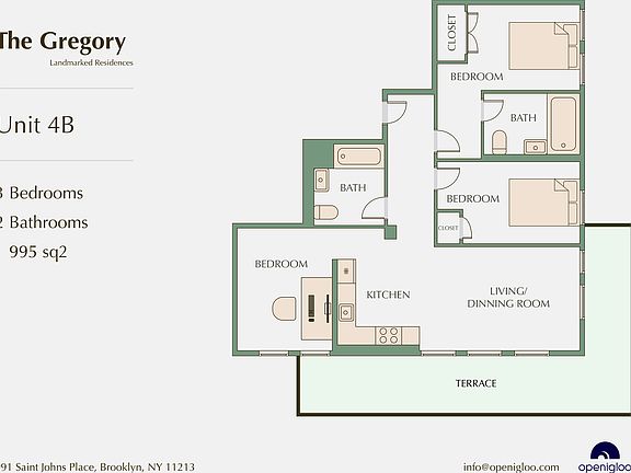 A stunning 2.5-bedroom in a newly built residence that blends modern comfort with Brooklyn's historic charm. This home features an additional flexible spaceperfect for a home office, media room, or even an extra bedroomalong with a private terrace for your own outdoor retreat. Located in the vibrant Crown Heights neighborhood, this home is just minutes from the Brooklyn Children's Museum and a short commute to Prospect Park. This thoughtfully designed unit features: Custom kitchen cabinetry and high-end bathroom fixtures Stainless steel appliances Spacious layout Enjoy premium building amenities, including: Fully equipped fitness center On-site parking (available for an additional fee) Storage & bicycle storage Pets welcome | Guarantors accepted Multiple units available in the building